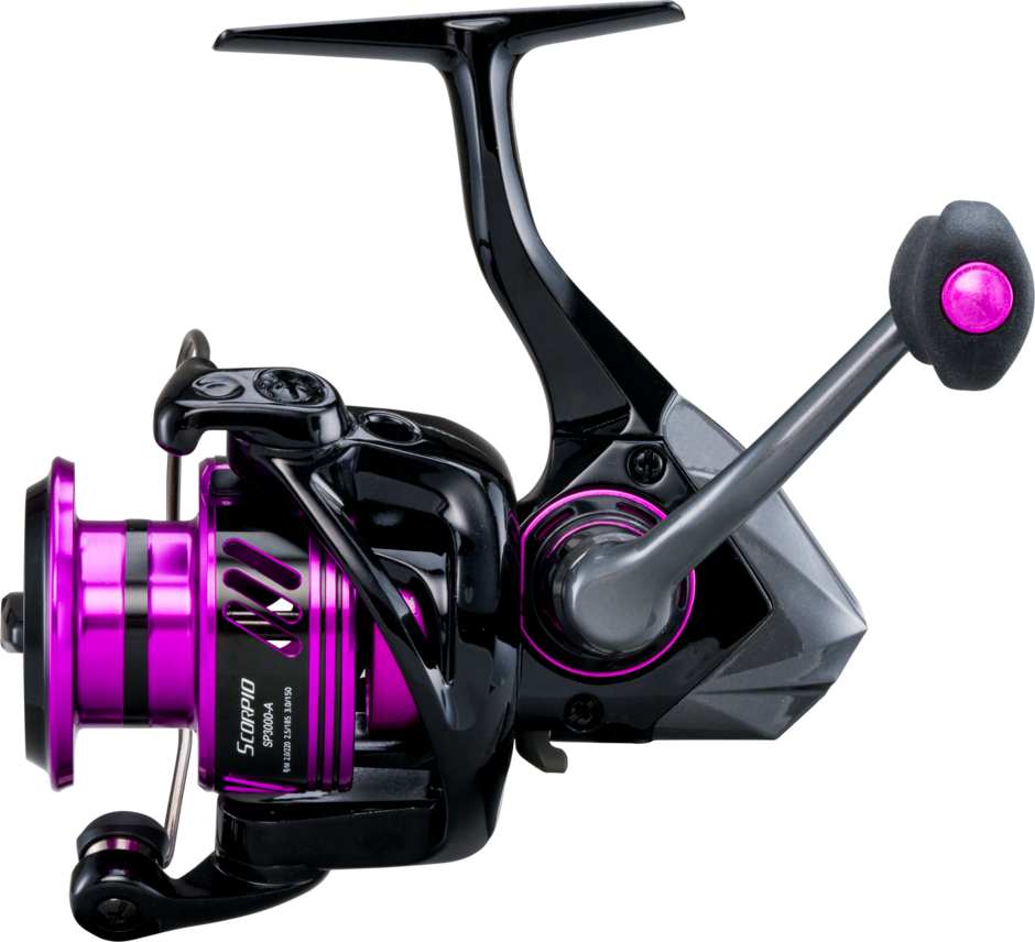 Ocarreto giratório Okuma Scorpio possui corpo de grafite resistente à corrosão, pintura exclusiva em metal preto e roxo, sistema anti-reverso infinito de configuração rápida e rotor de fluxo ciclônico (Cfr) que aumenta o fluxo de ar através do rotor com aberturas, aumentando o tempo de secagem e minimizando a corrosão ao longo do carretel .